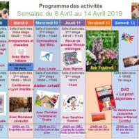 Publiée le 05/04/2019Voici le programme d'animation de la semaine du 8 au 14 Avril 2019 Lire la suite
